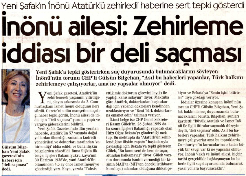 İnönü ailesi: Zehirleme iddiası bir deli saçması
