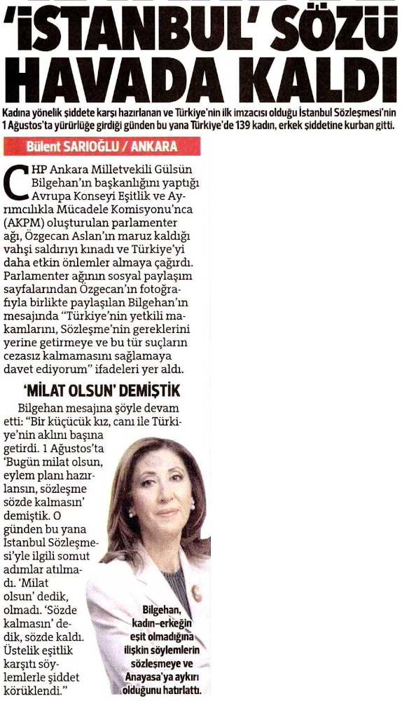 Gülsün Bilgehan’ın, Özgecan Aslan ile ilgili yaptığı açıklamaya ilişkin haber – Hürriyet Gazetesi – 19 Şubat 2015