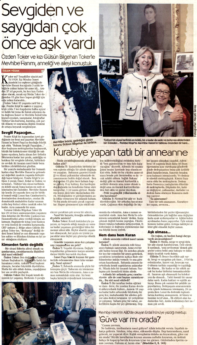 Sevgiden ve saygıdan çok önce aşk vardı – Cumhuriyet Gazetesi – 10 Mayıs 2015