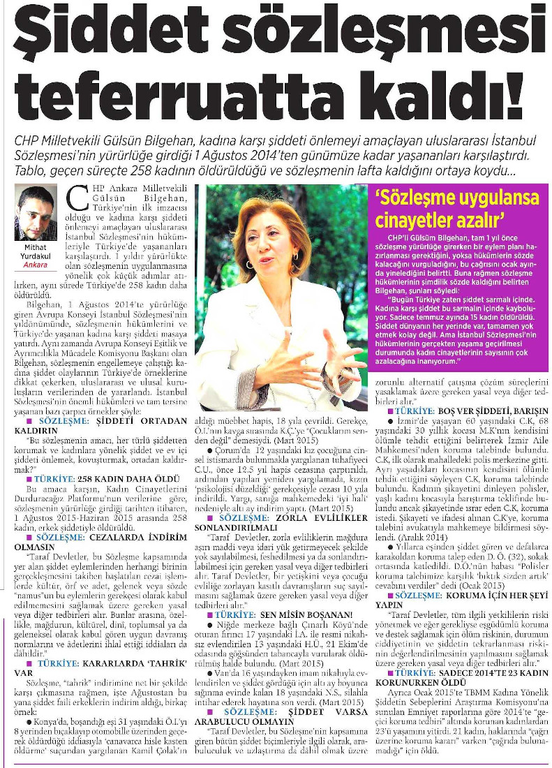Şiddet sözleşmesi teferruatta kaldı! – Milliyet Gazetesi – 1 Ağustos 2015