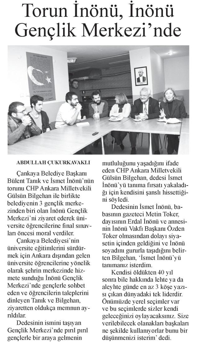 İsmet İnönü Gençlik Merkezi’ni ziyareti – Ankara Anadolu Gazetesi – 16 Mart 2014